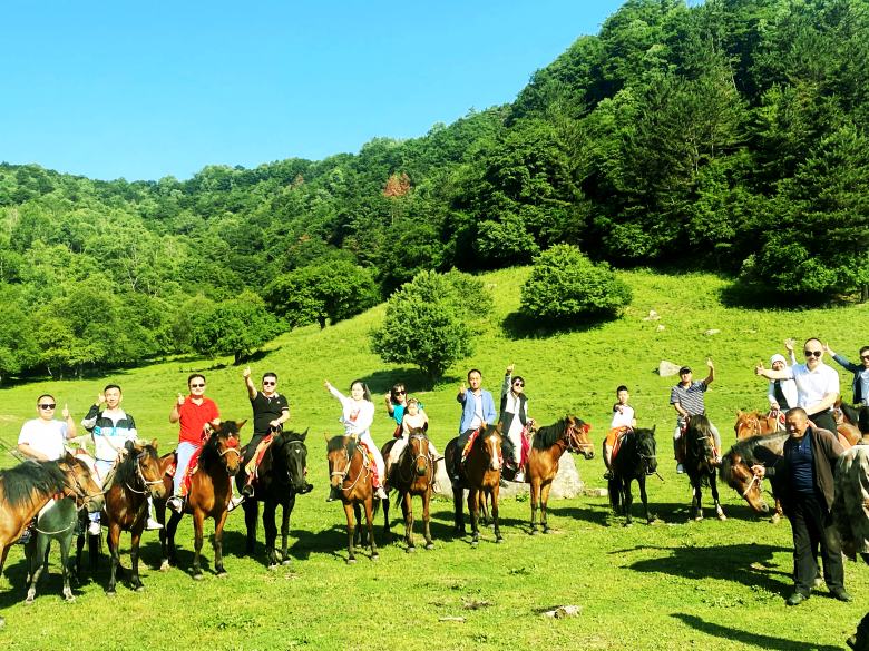 洗漱過后,我們就去騎馬巡山了。一邊騎著馬兒,一邊聽著《大王叫我來巡山》的歌曲,還真是有點意思。在一片蔥綠的草地上,大家被眼前的美景吸引,又忍不住拿出手機拍個不停。快樂的美好時光總是短暫的,愉快的旅程結(jié)束了,大家開車結(jié)伴返回西安,明天又要開始新的忙碌。再見了,關(guān)山牧場!