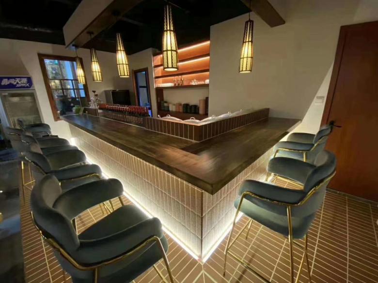 西安博菲克家具廠與堿一私廚餐廳簽署了家具訂購(gòu)協(xié)議,由我廠提供餐廳全部餐桌椅定做。堿一私廚設(shè)計(jì)是輕奢路線,那么,餐桌椅的款式也一定要緊密結(jié)合空間設(shè)計(jì)的要求。巖板臺(tái)面餐桌加上古典的餐廳沙發(fā),吧臺(tái)的吧椅也與酒吧的完全不同。