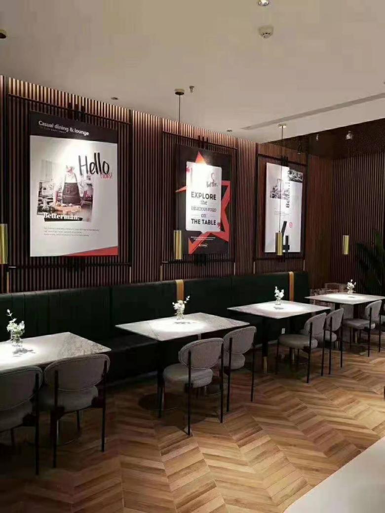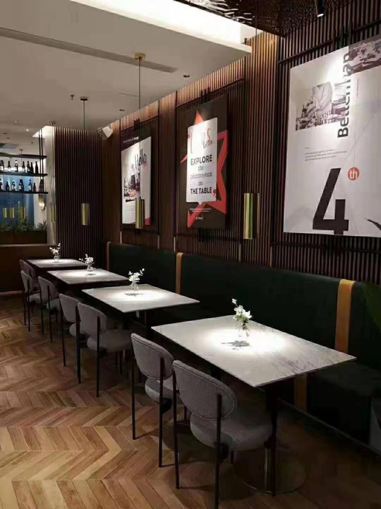 西安意風小鎮西餐廳就屬于后者??蛻羟宄约旱昝娴男枨螅虼?,對于西安餐桌椅批發市場里面的廉價餐桌椅,她壓根就沒有考慮。而我廠業務經理在介入這個項目之后,通過多次溝通,明白了客戶的真實需求。李總喜歡輕奢風格的餐桌,恰恰在展廳里有一款簡約風格的巖板餐桌瞬間捕獲了她的心,這款巖板桌子非常大氣有質感,李總毫不猶豫的就選定了它!后面,李總也看上了我廠擺放的餐廳卡座沙發樣品,這是一款特別流行的高背板款式,是西餐廳里面使用最多的款式了。