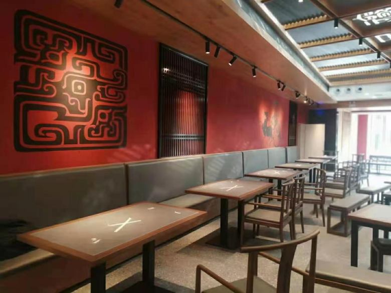1、餐桌椅及卡座沙發顏色要求一致,整個風格偏向于沉穩,體現出了濃濃的歷史氛圍元素。