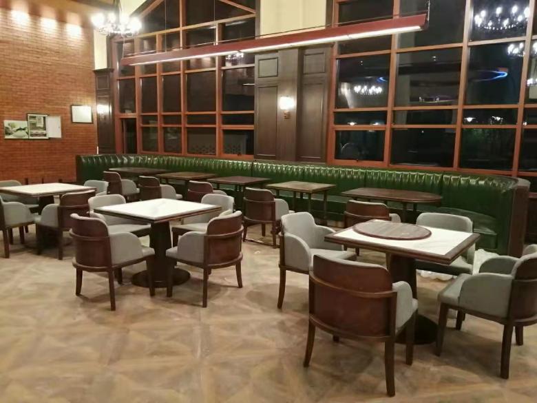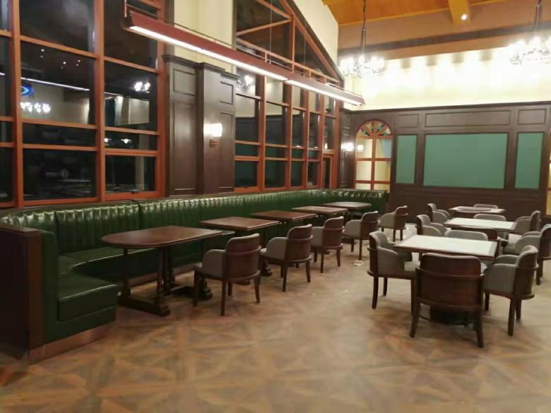 西安秦嶺野生動物園西餐廳定做卡座沙發餐桌椅驗收完工