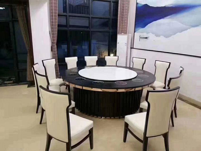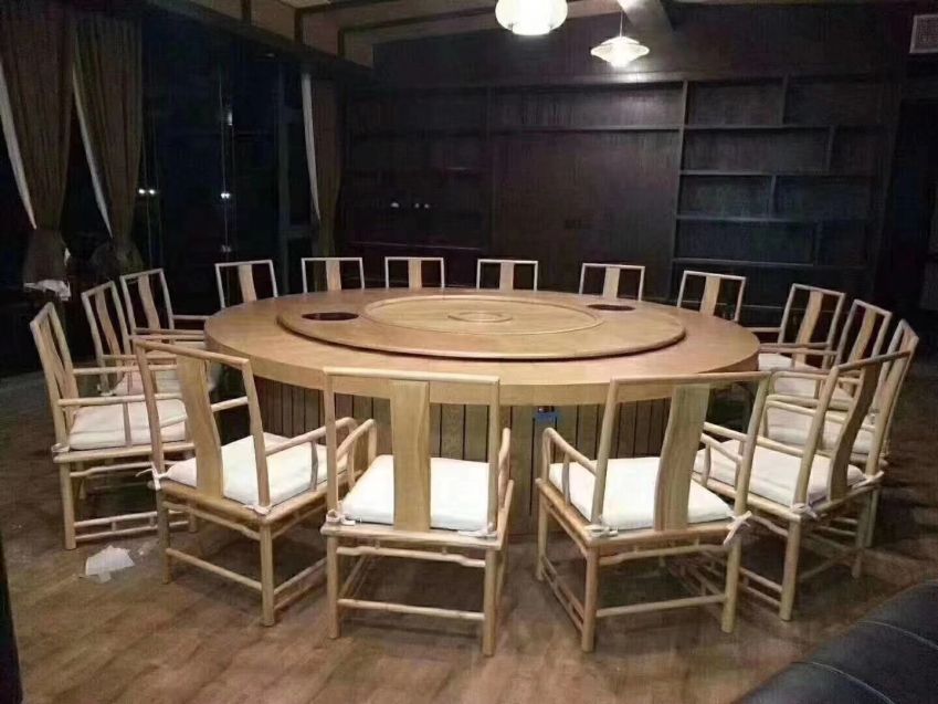 西安實木帶轉盤電動大圓桌餐桌椅