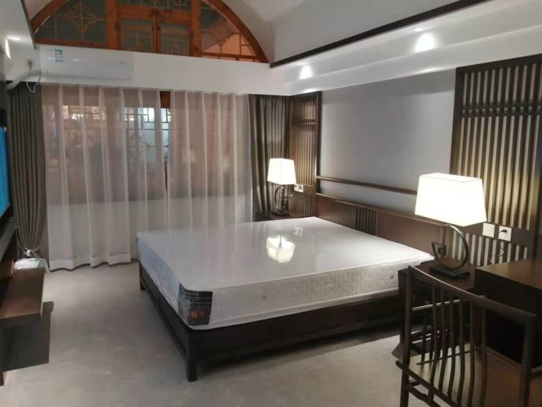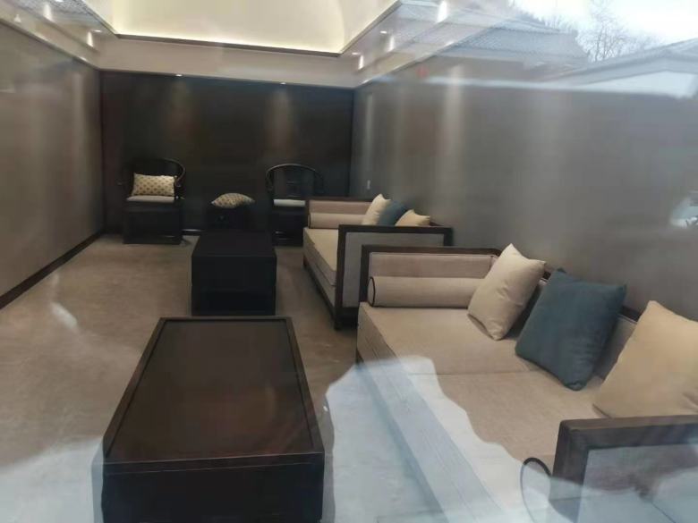 經過溝通后,設計師明白了客戶的需求,客房的裝修以中式風格為主,酒店家具也以新中式設計為主,包括酒店床、酒店沙發、酒店辦公桌椅、酒店包廂餐桌椅。另外,該民宿酒店還配備了KTV,因此,也需要定做KTV沙發和茶幾。