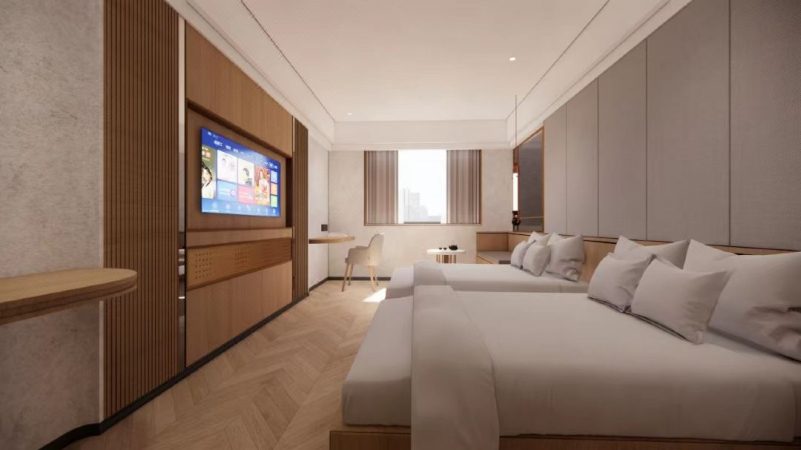前面我們說過,客戶的酒店位置絕佳,處于城中心的廣場旁。因此,即使是二次翻新改造,客戶依然沒有采用家具貼膜的方式去圖省錢,而是要重新設計酒店客房,再按照效果圖去定制家具。